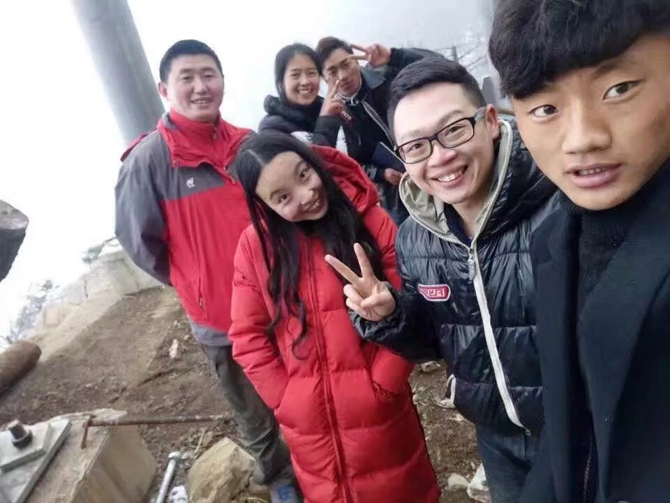 M:还真的有一件事挺难忘的,还很惊险。我记得有一年去外地工作,去到了一个雪山上,是那种真正的雪山,一望无垠。那时候因为项目原因,要到雪山上去调研,可是上山的路极其难走,我和同去的小伙伴是抓着有刺的植物和修缆车留下来的电线,在将近六七十度的陡陂攀爬上去的。由于路实在太难走,又掺杂着一些意外,我和大伙儿走散了。在茫茫的雪山上我重心不稳,一不小心翻了几个跟头,差点掉了下山。幸亏小伙伴们立刻找来了几个当地人,大家一起找我,最后我才得以脱险。说真的,挺感谢他们,不然后果不堪设想~对了,最后我们还拍了个合影来纪念这段令人难忘的旅程。我现在想起来,觉得虽然惊险,但也成功地突破了自我,感觉很棒。