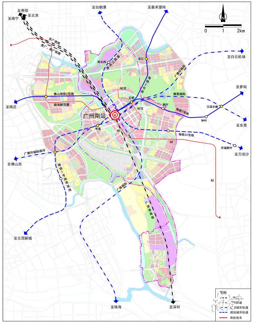 南海新交通:广州南站-南海金融高新区;N2线:广州南站-大夫山-市桥-莲花山。